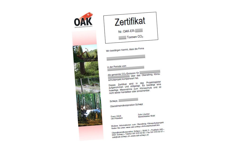 Unser Ziel: CO2-Emissionen reduzieren und substituieren – Restemissionen über das Projekt der Oberallmeindkorporation Schwyz kompensieren.