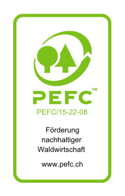 Zertifikatsnummer: FSC® 100% TUVDC-FM/COC-300015 / 100% PEFC: DC-FM-000025. Unser Holz ist Schweizer Holz.